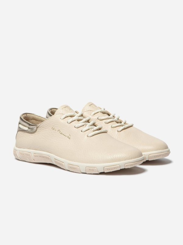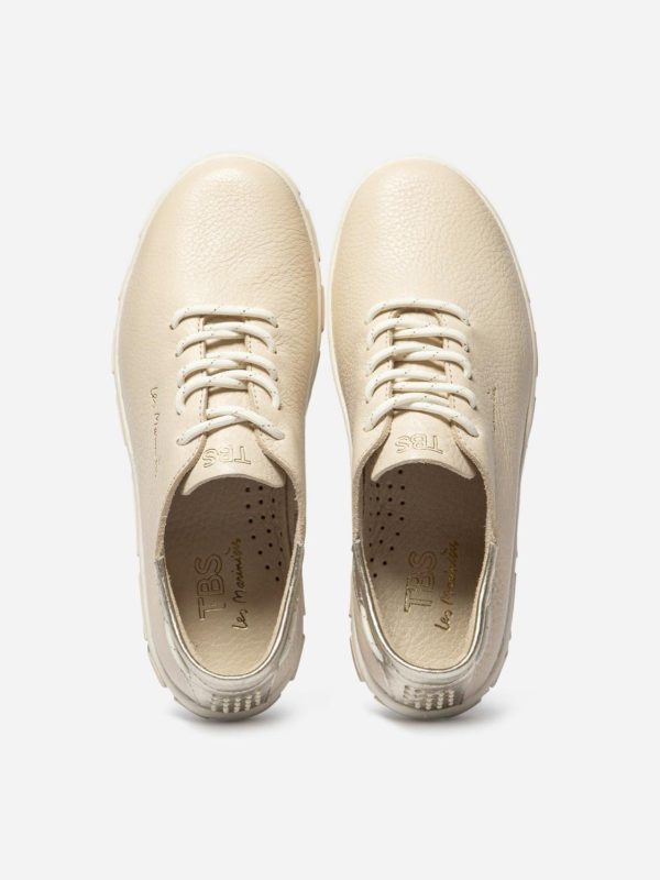 Tbs Baskets Cuir | Femme Tennis Confort Cuir Blanc Et Coloris Or JAZARU Blanc Champagne
