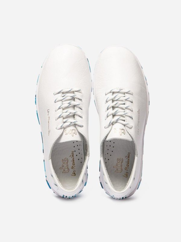 Tbs Baskets Cuir | Femme Tennis Confort Cuir Blanc Et Coloris Or JAZARU Blanc Champagne