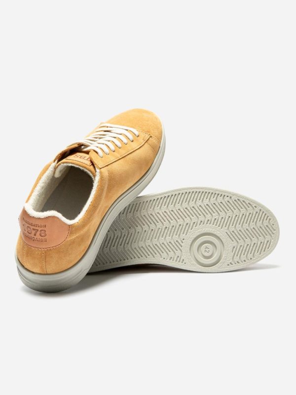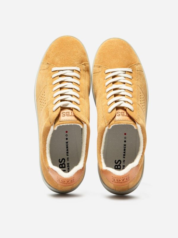 Tbs Baskets Cuir | Homme Baskets Fabriquées En France Cuir Velours Jaune FLAUBER Moutarde