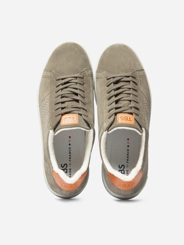 Tbs Baskets Cuir | Homme Baskets Fabriquées En France Cuir Velours Kaki Truffe