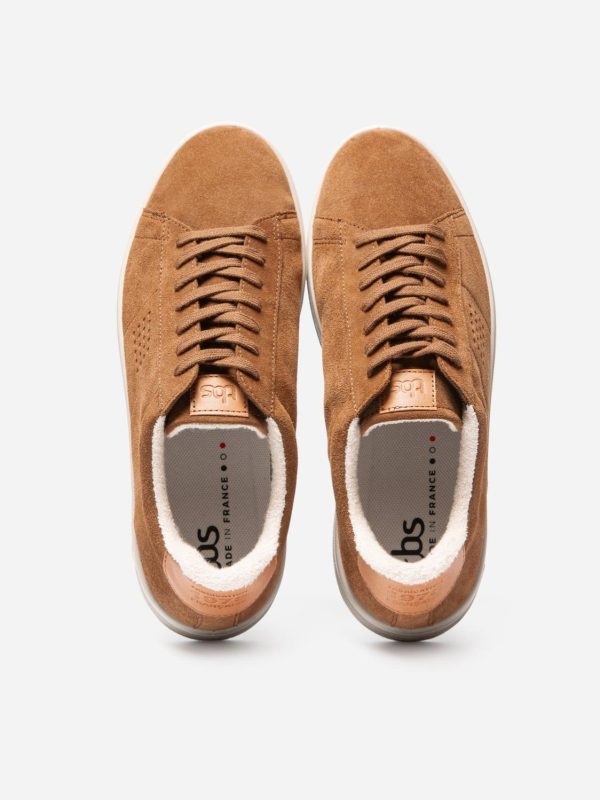 Tbs Baskets Cuir | Homme Baskets Fabriquées En France Cuir Velours Marron Cognac