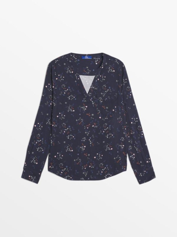 Cette blouse au col rond est dotée d’un imprimé exclusif tbs qui apporte une touche automnale à vos silhouettes.