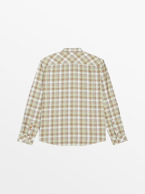 Cette chemise à grand carreaux, idéal pour l’entrée de saison peut se porter en surchemise légère. Elle permet de travailler un look casual, le pop couleur piment apporte une pointe lumineuse à la silhouette.