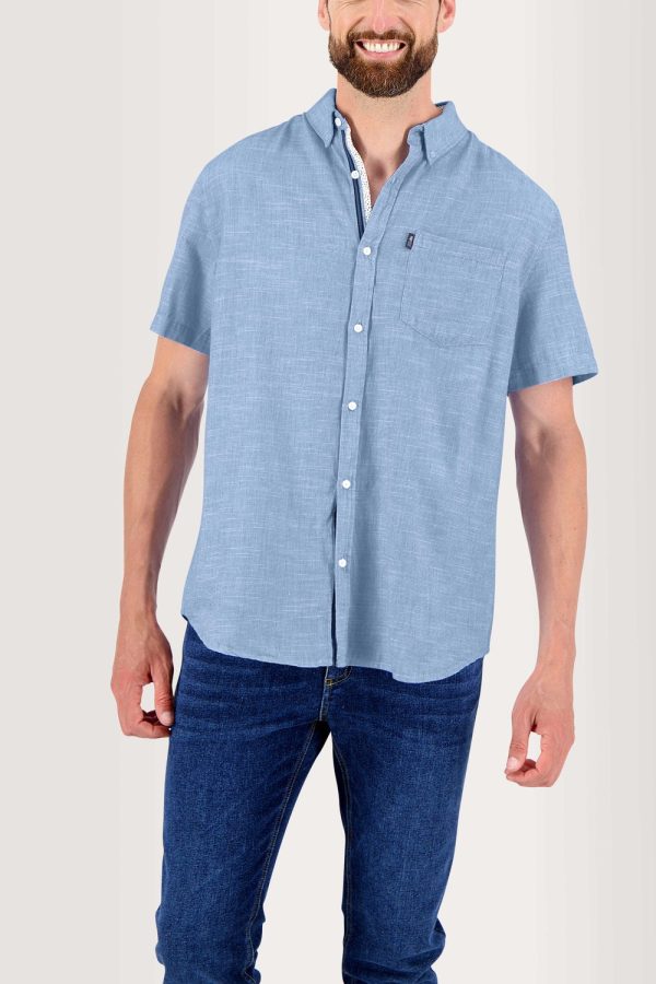 Déclinée dans des coloris de saison, cette chemise 100% coton est idéale pour les looks d’été ! Sa matière est singulière et se traduit pas un faux-uni formant un petit jacquard flamé blanc. Un fil coloré mais légèrement blanchi. La fantaisie est jouée par un biais à l’intérieur du col et de la patte boutonnée. Sa poche poitrine apporte un esprit décontracté !
