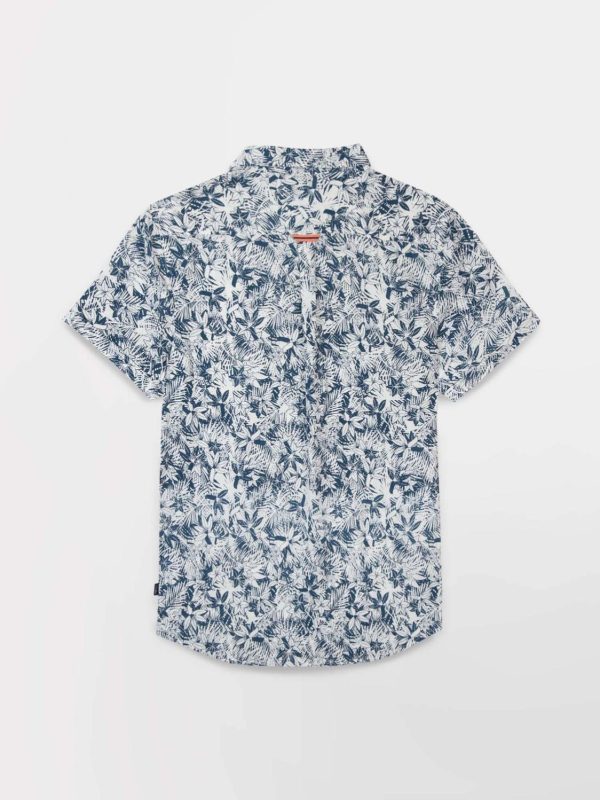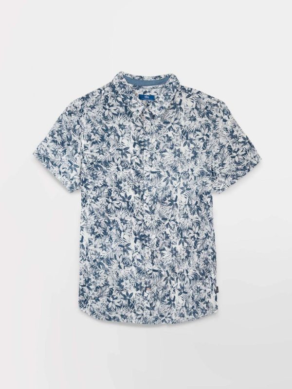 Inspirée de la chemise Hawaïenne, celle-ci se démarque par un motif Palme monochrome. Toute en légèreté pour l’été, elle se compose d’une mélange de coton et lin, très apprécié pour les journées chaudes! La fantaisie est également présente par un biais contrasté à l’intérieur du col et de la patte boutonnée. Sa coupe confort vous mettra à l’aise sans aucun doute. br>