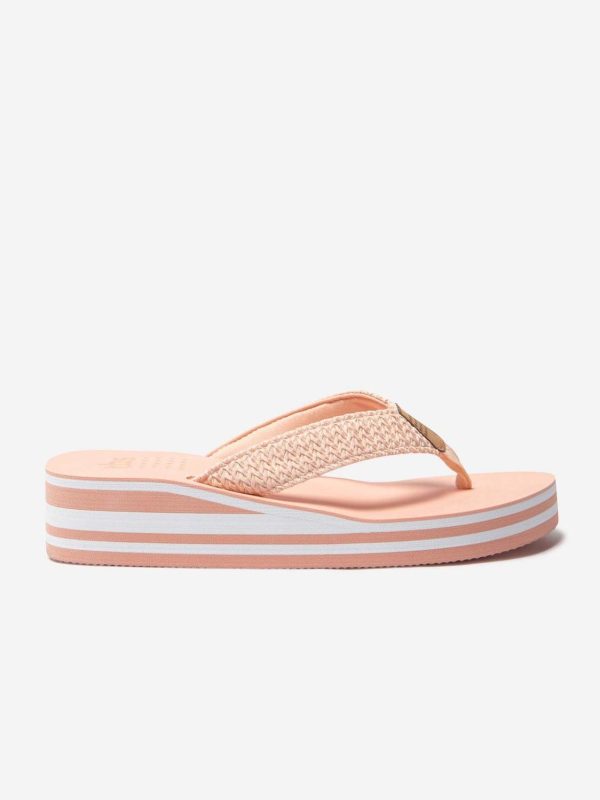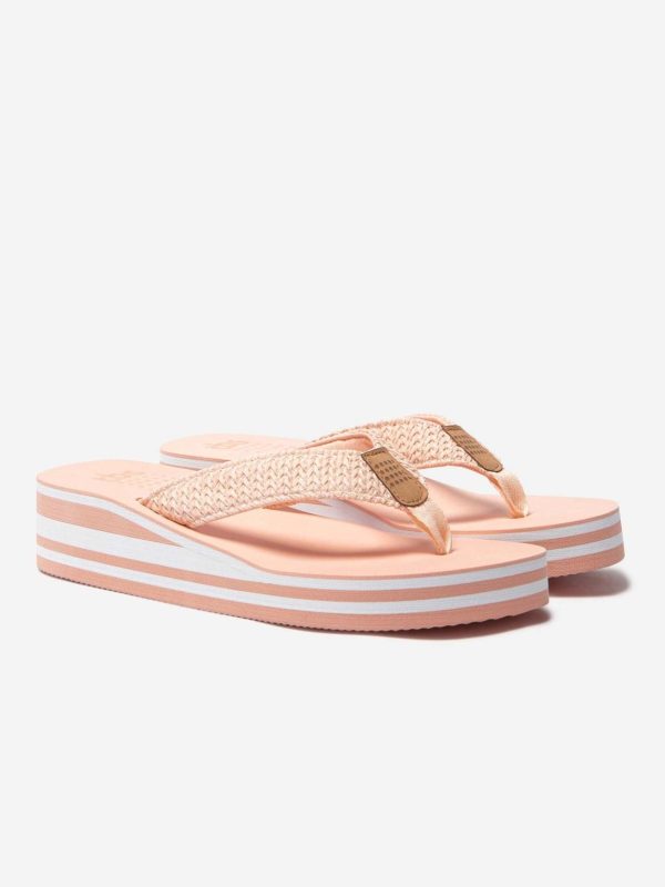 L’indispensable de la saison estivale, la tong compensée ! Très légère avec un dessus en textile elle vous offre un confort optimum.