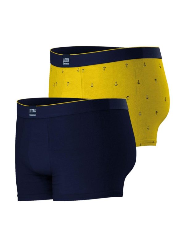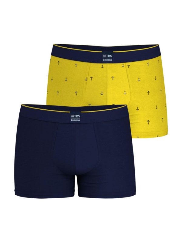 En collaboration avec la marque Eminence, TBS vous propose une gamme de boxer pour homme très confort avec une touche fantaisie faisant écho à notre univers nautique ! Des couleurs identitaires telles que le bleu marine et le jaune sublimées par un micro motif ancre marine. Sa taille élastiquée et sa composition en Coton & Elasthanne (Certifié OEKO Tex Standard 100) vous garantissent un confort au porté indéniable. Une matière à la fois souple, douce mais aussi très résistante dans le temps. Lot de 2 boxers vendus dans une boîte cartonnée. Pour des raisons d’hygiène, ce produit ne peut pas faire l’objet d’un retour ou d’un échange. Merci de votre compréhension.