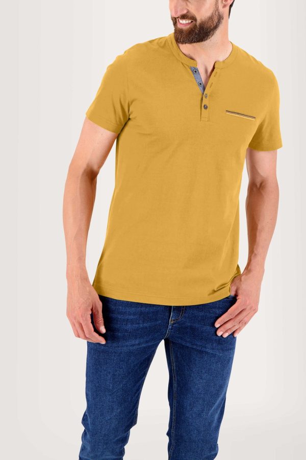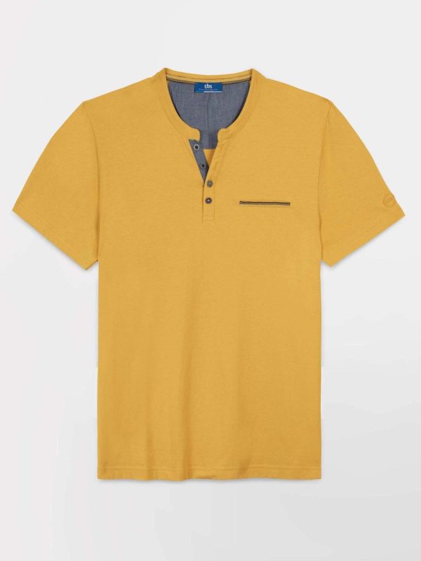 Pour un esprit 100% estival, adoptez ce tee-shirt au col tunisien. Il se joue d’un contraste en chambray à l’intérieur de la patte boutonnée et à l’intérieur du dos. Fabriqué dans un coton bologique pour un vestiaire plus durable.