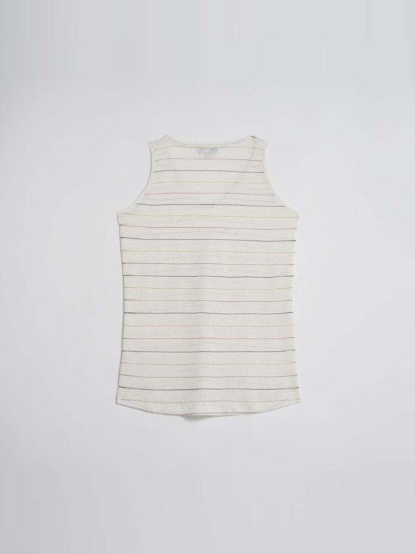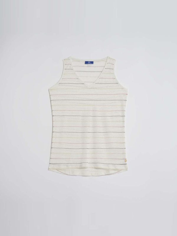 Pour les journées les plus chaudes, choisissez ce débardeur en lin. Léger, frais et souple c’est une fibre idéale pour supporter la chaleur. Un joli fil lurex vient souligner ce débardeur tout en féminité.