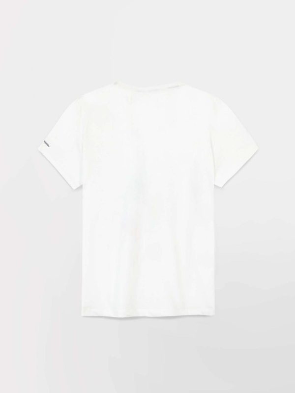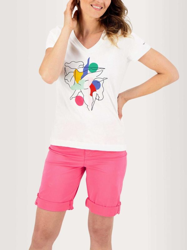 Ce tee shirt est orné d’un print exclusif dessiné en collaboration avec les artistes nantais The Feebles! Ce dessin représente le sport avec comme discipline: Le plongeon. Concernant sa coupe, ce tee shirt est conçu avec des manches montées et un col V. On y trouve également un biais intérieur coloré pour la fantaisie. Fabriqué en coton biologique pour une mode plus durable.