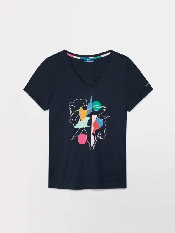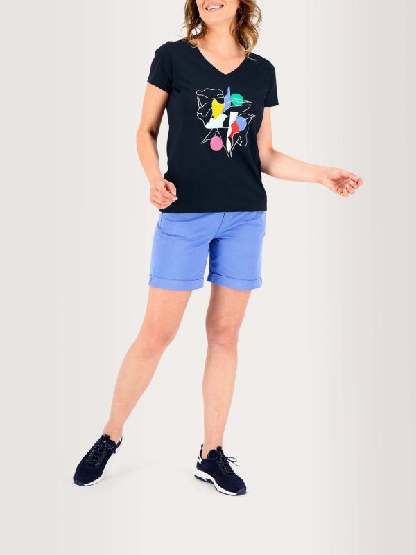 Ce tee shirt est orné d’un print exclusif dessiné en collaboration avec les artistes nantais The Feebles! Ce dessin représente le sport avec comme discipline: Le plongeon. Concernant sa coupe, ce tee shirt est conçu avec des manches montées et un col V. On y trouve également un biais intérieur coloré pour la fantaisie. Fabriqué en coton biologique pour une mode plus durable.