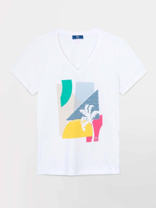 Craquez pour ce tee-shirt 100% coton biologique et son print placé d’inspiration paysage exotique. Le col V et sa coupe légèrement cintrée féminisent votre silhouette. Décliné dans 2 coloris pour satisfaire tous les goûts !