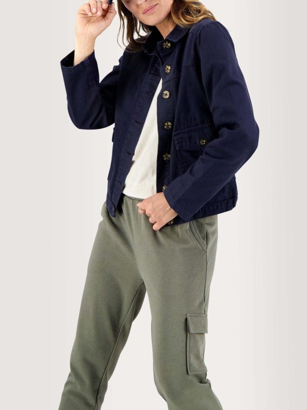 Cette veste en coton vous habille en un claquement de doigts ! Une coupe courte esprit blouson (longueur hanches) aves ses 2 poches plaquées à rabats pour plus de caractère ! Elle se veut légèrement ressérée en bas pour un maintien parfait sur vos hanches. Ses boutons esprit corne jouent la fantaisie.